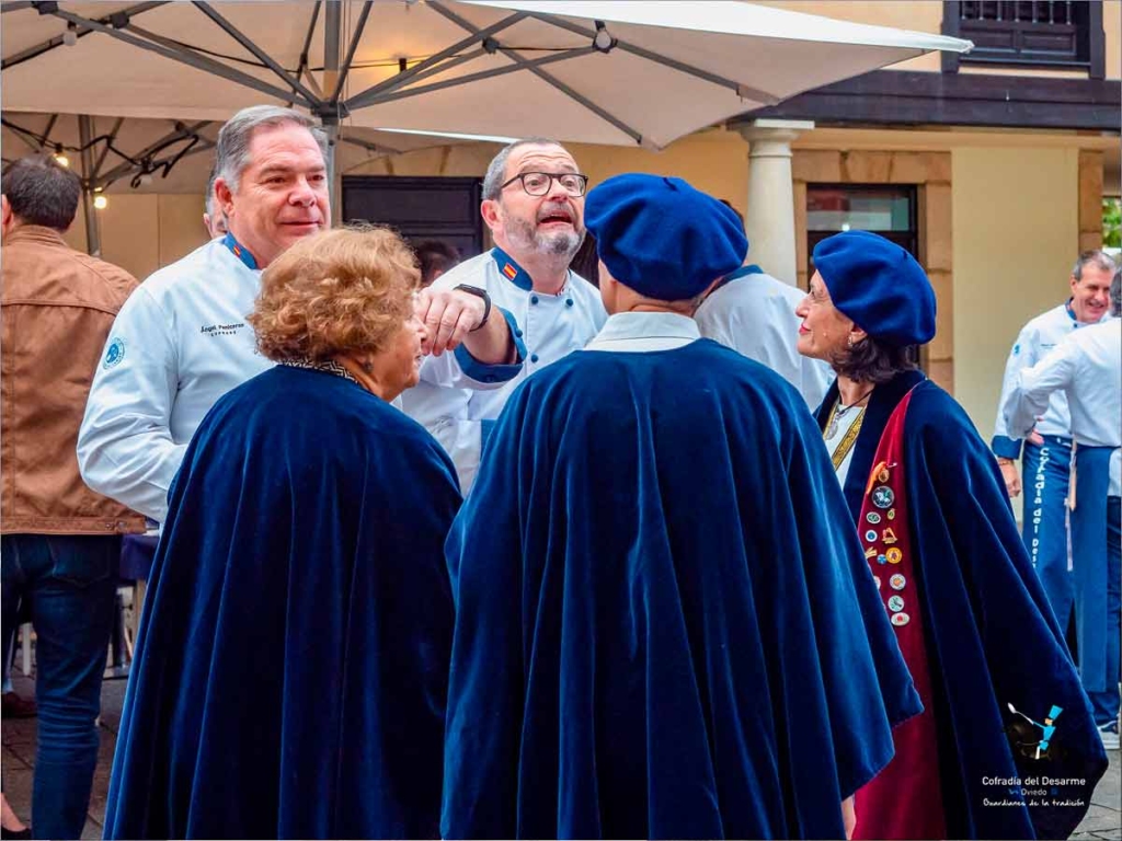 Este año se eligió el Teatro Filarmónica para poder dar cabida a los más de 300 asistentes, entre los que se encontraban los 38 nuevos Cofrades, resto de Cofrades de número y de Honor de nuestra Cofradía, integrantes de otras Cofradías, autoridades e invitados. Como siempre, nuestra Cofrade Bea Campal presentó el acto y el Cofrade Mayor Miguel Ángel de Dios lo dirigió. Agradecemos al Ayuntamiento por su continua colaboración y que nos haya brindado la utilización de todos los espacios necesarios para el Capítulo, así como a la Universidad de Oviedo, que aunque en esta ocasión no fue sede para el acto por la limitación de aforo, siempre pone a nuestra disposición lo necesario.